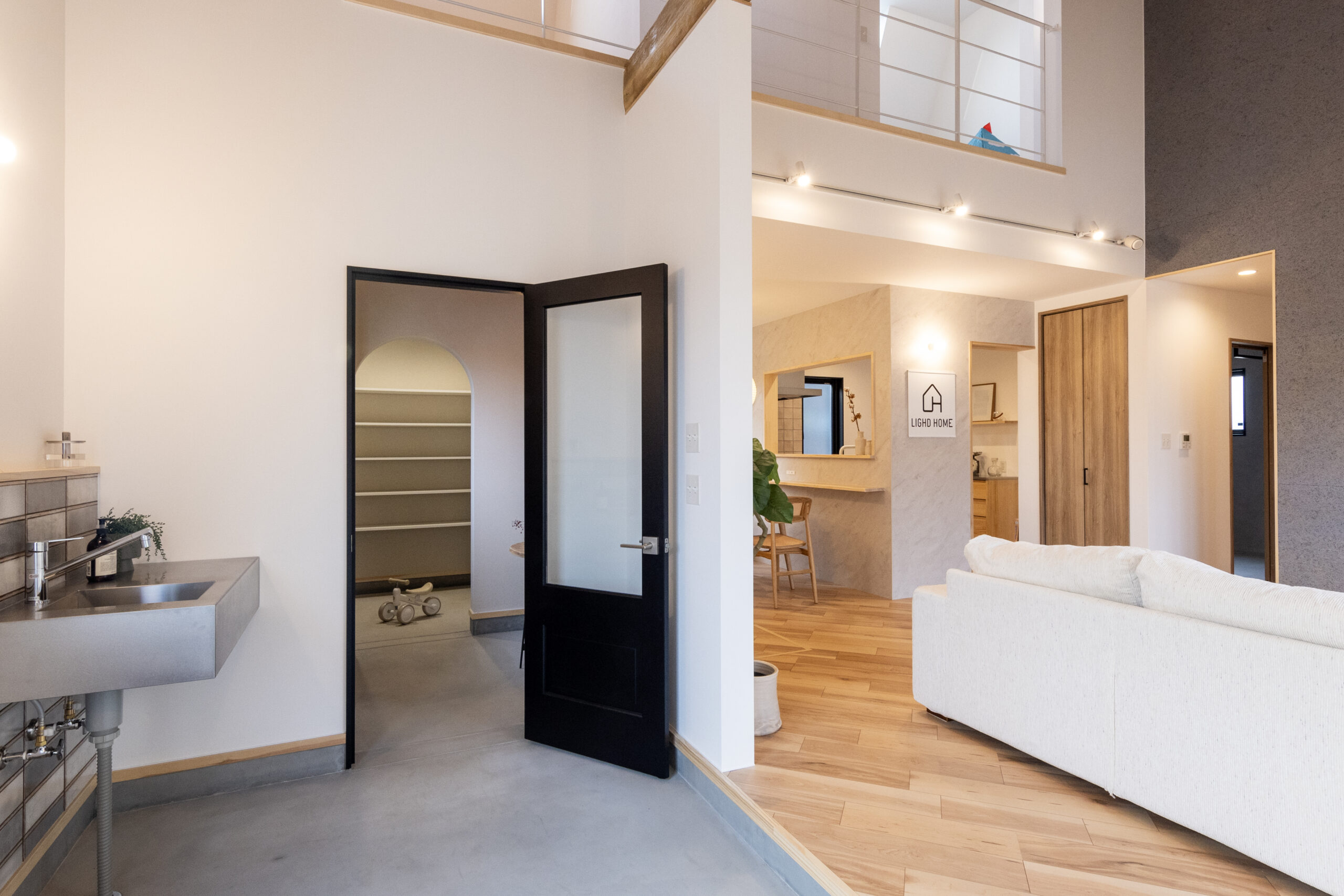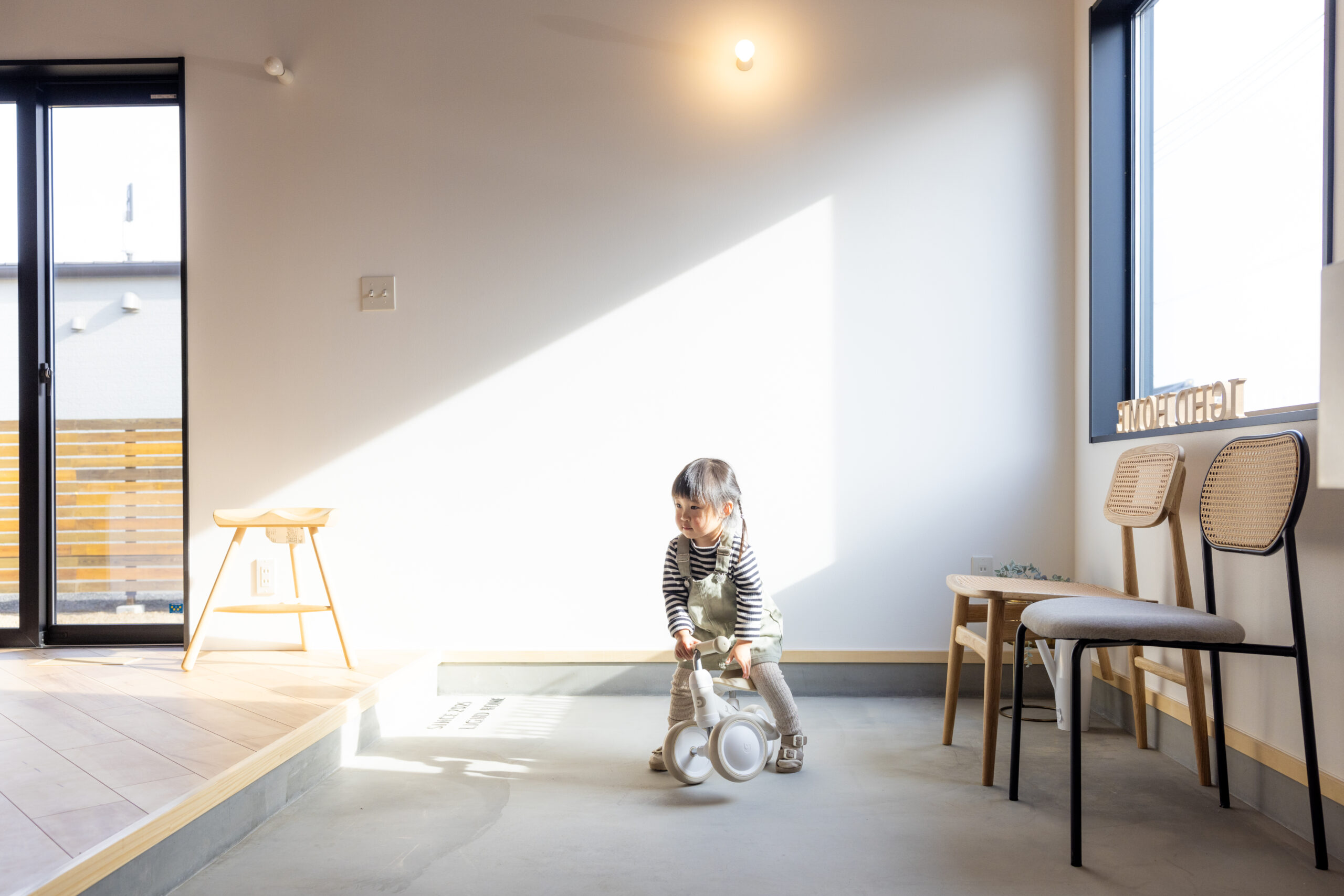 玄関の広い土間は様々の用途で利用できそうです。 リビングから見えるロフトは家族をいつも一つにしてくれるステキな空間になることでしょう。